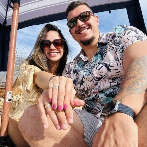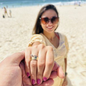 O pedido de casamento foi do jeitinho deles: emocionante e divertido. Durante uma viagem de final de ano a Byron Bay (Australia), eles encontraram por acaso uma trilha com uma vista incrível. Encantados, decidiram voltar ali no fim do dia para assistir ao pôr do sol. O que não imaginavam era que o final da trilha dava acesso a uma praia de nudismo e, no meio da cena, um visitante bastante à vontade acabou rendendo boas risadas aos dois. Mesmo assim, a beleza do lugar falou mais alto. E foi ali, entre surpresa e encantamento, que Gabriel fez o primeiro pedido de casamento. No dia seguinte, ainda havia mais: uma segunda surpresa preparada com carinho, um piquenique à beira-mar ao nascer do sol, justamente no dia do aniversário de Larissa, onde ele ouviu novamente um ‘sim’ cheio de emoção.